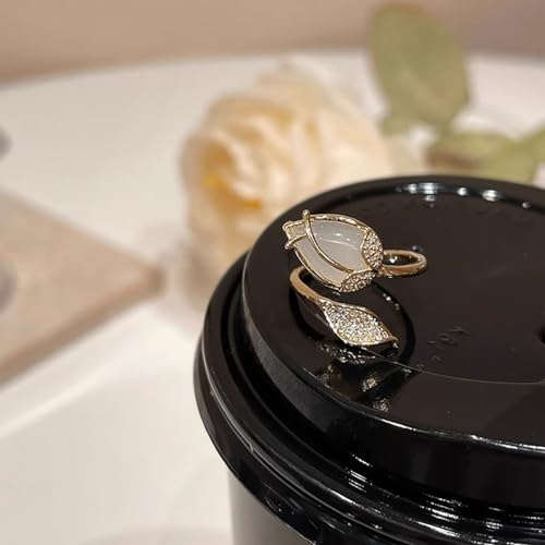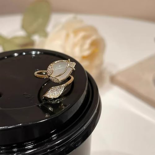 Kokoma CZ Tulip Ring for Women Crystal Flower Wrap Finger Band Open Statement Promise Rings Engagement Band Adjustable 6