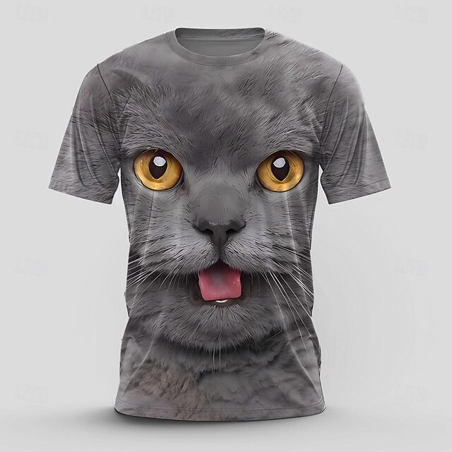 More information about Men's Cat T Shirt Short Sleeve T shirt 3D Print Crew Neck Shirt Retro Vintage Casual Street Style Sports Outdoor Holiday Going out Black Dark Gray Spring & Summer Clothing Apparel S M L XL 2XL 3XL