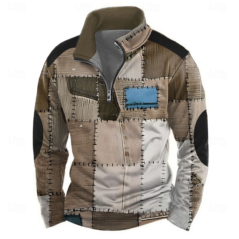 More information about Men's Geometric Plaid 3D Sweatshirt Casual Long Sleeve High Neck Party Club Blue Brown Zipper Quarter Zip Fall Winter Designer