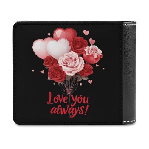 Valentines Love You Always Cute Slim Bifold Wallet for Men Stylish Front Pocket Purse with Card Holder Slots 3