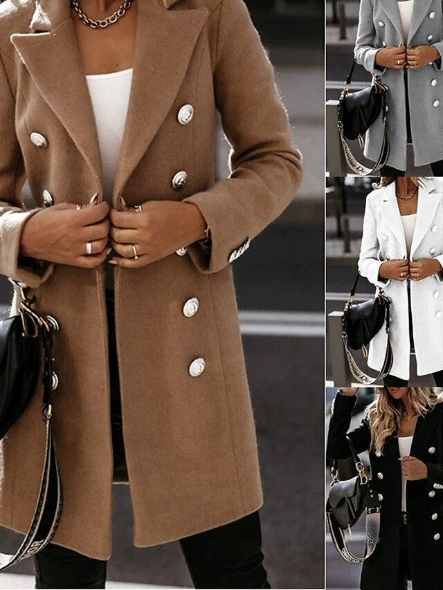 Women's Casual Jacket Warm Comfortable Pocket Buttons Fashion Outdoor Plain Going out Weekend Single Breasted Regular Lapel Regular Fit Long Sleeve Outerwear Black White Khaki Fall Winter 11