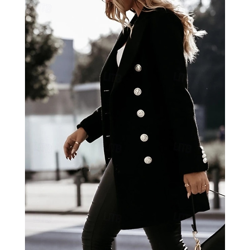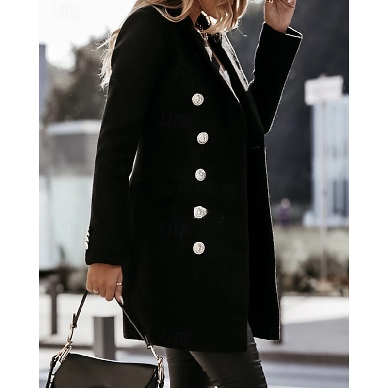 More information about Women's Casual Jacket Warm Comfortable Pocket Buttons Fashion Outdoor Plain Going out Weekend Single Breasted Regular Lapel Regular Fit Long Sleeve Outerwear Black White Khaki Fall Winter