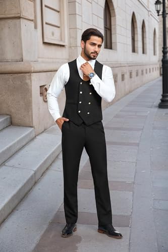 Men's Suits Slim Fit 3 Piece Mens Double Breasted Suit, Formal Tuxedo Suits for Men Wedding Prom Homecoming Business 3