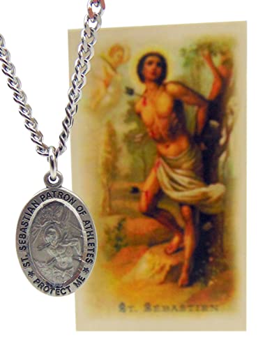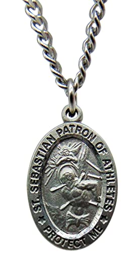 HOT ! Westmon Works Saint Sebastian Pewter Medal 3/4 Inch Long with Stainless Steel Chain Boxed