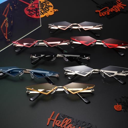 Rimless Lozenge Rave Sunglasses for Women Men Fashion Polygon Sun Glasses Metal Frame Party Halloween Shades 6