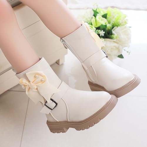 IWIHMIV Little Girls Riding Boots Girls Bow Leather Boots Winter-Warm Ankle Bootie Winter Shoes for Kids Girls 4
