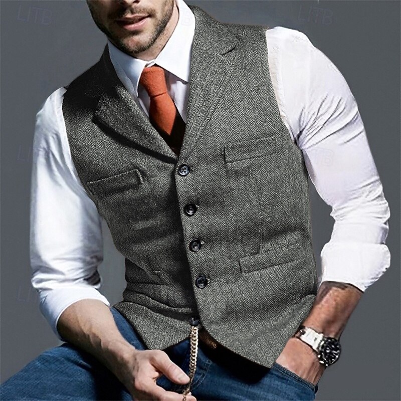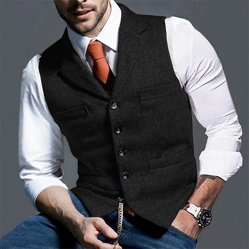 More information about Men's Vest Waistcoat Gilet Vacation Party Business Fashion Casual Spring Fall Pocket Buttons Polyester Comfortable Plain Single Breasted One-button Lapel Regular Fit Light Coffee Black Green Light