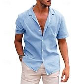 More information about Men's Shirt White Cotton Shirt Casual Shirt Cotton Linen Shirt Plain Vacation Street Black White Navy Blue Sky Blue Short Sleeve Camp Collar Summer Clothing Apparel Button-Down