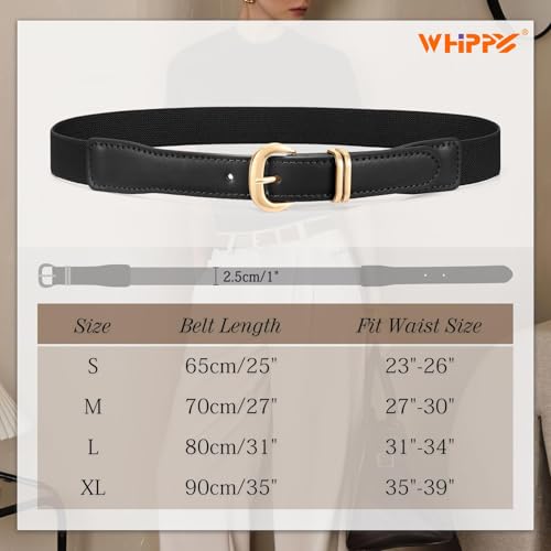 More information about WHIPPY 2 Pack Women Skinny Elastic Belt Fashion Gold Buckle Stretchy Thin Waist Belts for Dresses