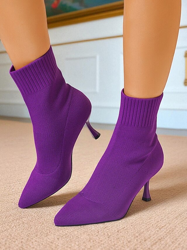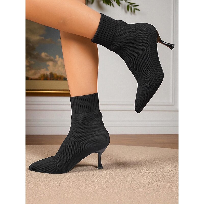 Women's Burgundy Knit Sock Boots – Pointed Toe Stiletto Heel Ankle Boots with Stretch Fabric, Chic Modern Style for Autumn Winter Office Wear, Parties and Elegant Evening Outfits 17