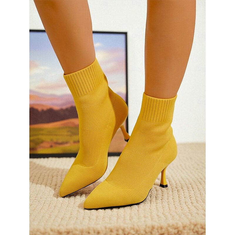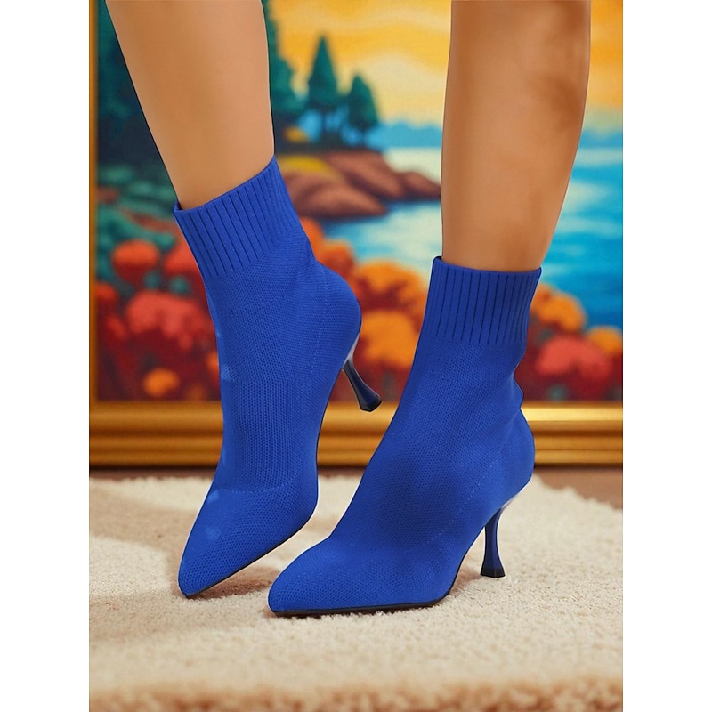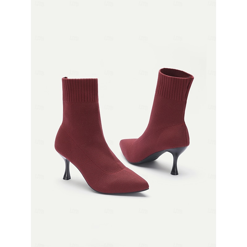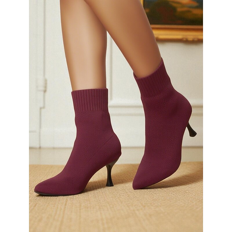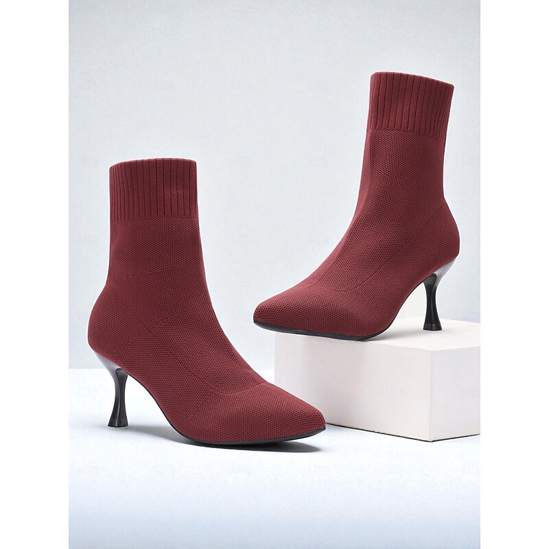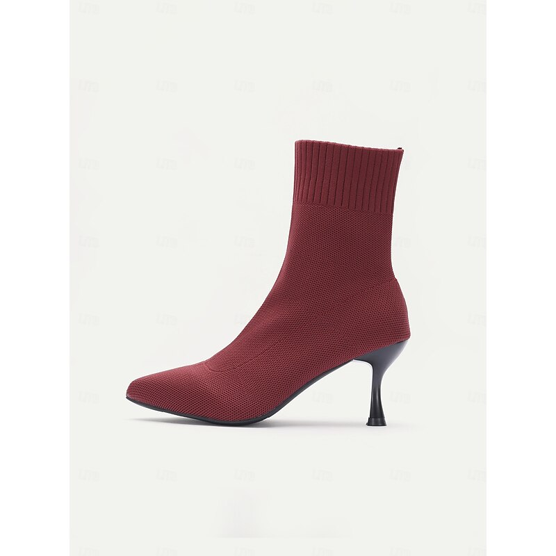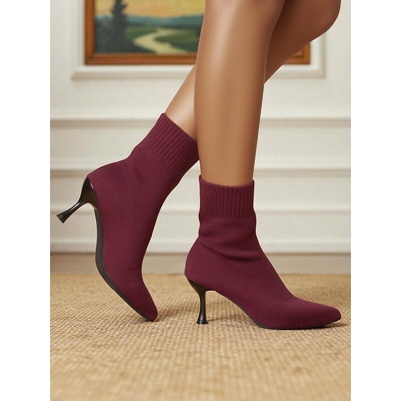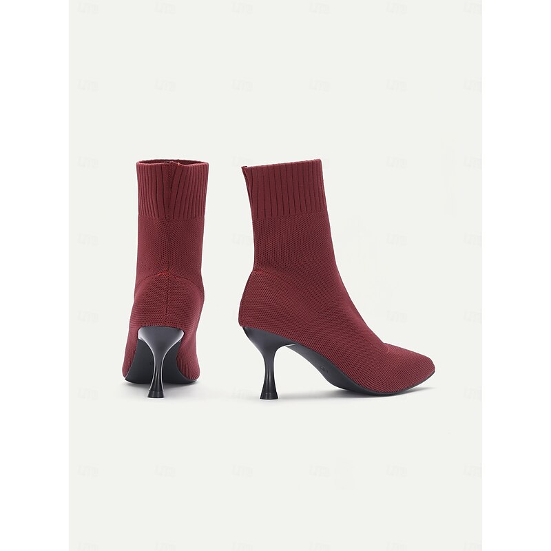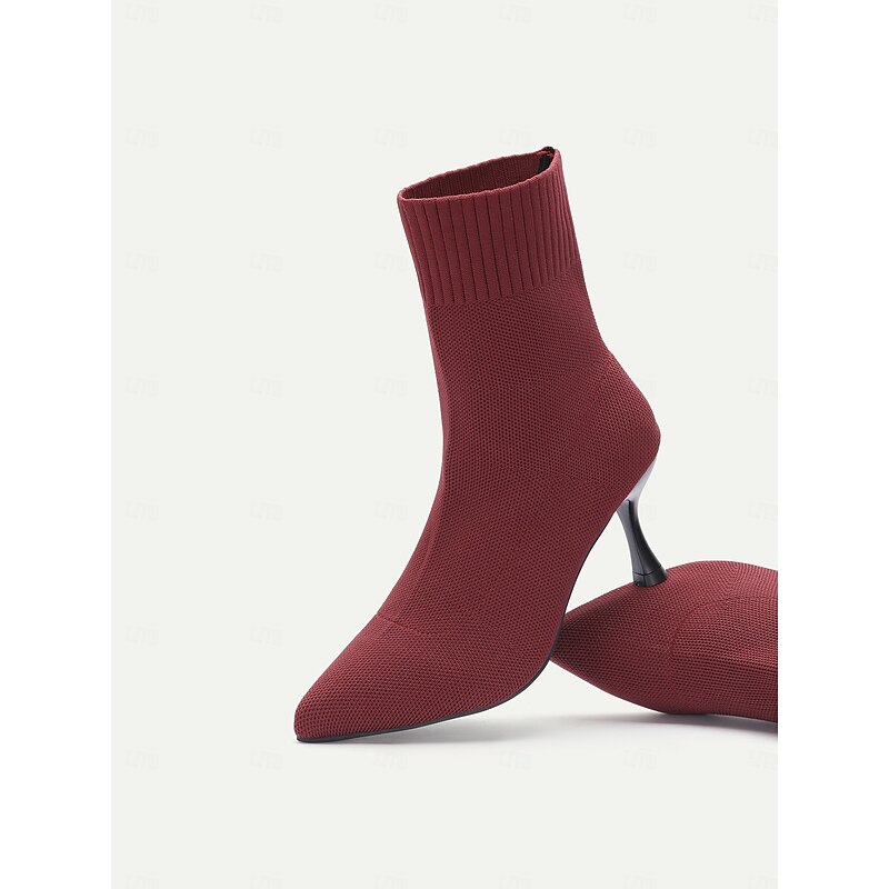 Women's Burgundy Knit Sock Boots – Pointed Toe Stiletto Heel Ankle Boots with Stretch Fabric, Chic Modern Style for Autumn Winter Office Wear, Parties and Elegant Evening Outfits 21