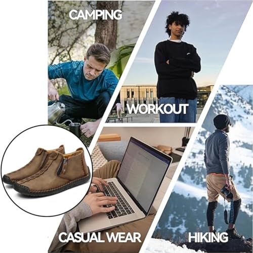 • 【High Quality】 : The upper of this phanile men's outdoor comfy arch support waterproof walking shoes is made of high-quality pu with a clear texture and is stitched with soft double hand-knitting to make the hand-stitched zipper shoes wear-resistant and solid