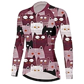 HOT ! Women's Cycling Jersey Cat Funny Long Sleeve Bike Jersey Top with 3 Rear Pockets Mountain Bike MTB Road Bike Cycling Quick Dry Reflective Strips Back Pocket Moisture Wicking Sports Wine Red Dark Navy