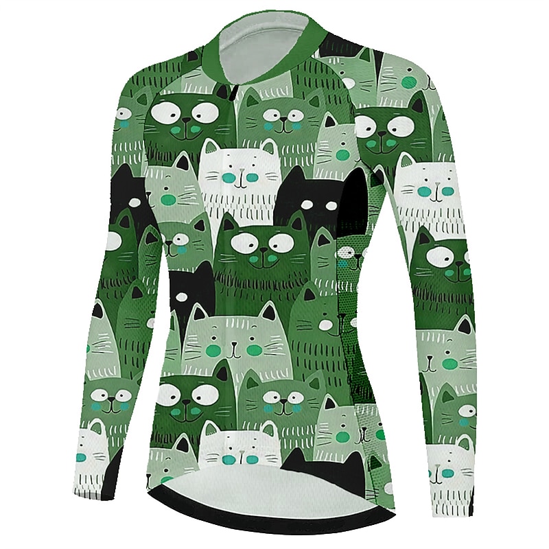 Highlights - Long sleeves for maximum coverage and protection - Specifically designed for women - Stretchy for comfort and flexibility during activities - Ideal for athleisure wear, combining form and function - Quick dry technology to keep you feeling fresh and comfortable - Moisture-wicking properties to help you stay dry and cool - Fun cat pattern adds a playful touch to your outfit - Perfect for mountain biking and road cycling enthusiasts alike