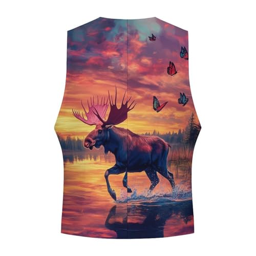 Running Moose And Butterfy Suit Vest for Men Slim Fit Sleeveless Jacket V Neck Business Waistcoat Button Up Dressy Top 4