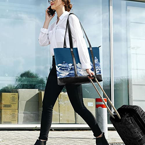 susiyo Ink Painting with Blue Mountains Laptop Tote Bag for Women 15.6 Inch Canvas Zip Large Travel Shoulder Handbag Business Office Work Bag Briefcase 1