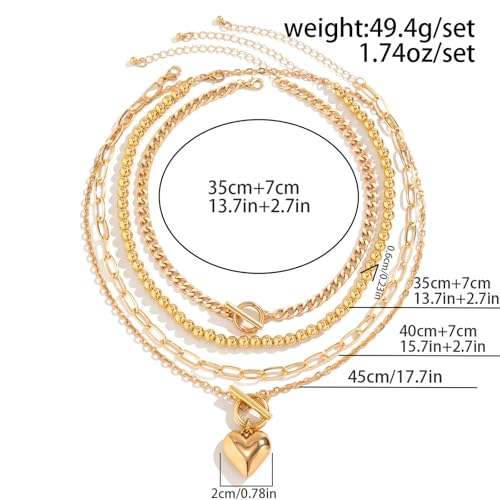 Otxas Chunky Gold Necklace Non Tarnish Gold Layered Necklaces for Women Paperclip Chain Necklace Big Heart Pendant Necklace Gold Necklace Stack Gold Jewelry Set 4