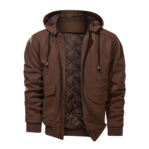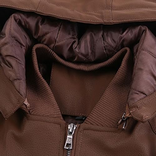 JEKE-DG Men's Thicken Hooded Windbreaker Coat Faux PU Casual Trucker Coat Jacket Warm Zip Up Fashion Outdoor Coats 6