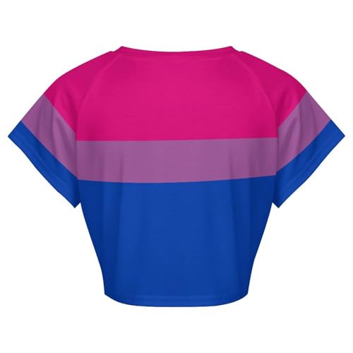 HOT ! Bisexual Pride Flag Girls Crop Tops Short Sleeve T-Shirts for Teenagers Crew Neck Basic Tee
