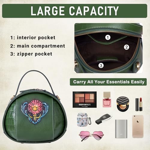Genuine Leather Vintage Bag for Women - Cowhide Leather Crossbody Purse - Flower Embossed Handbag 3