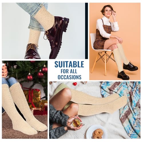 • Suitable Size: each coral fleece sock measures approximately 8.27 inches/21 cm in the foot area and 15.75 inches/40 cm in leg length, with elasticity; These high fuzzy socks effortlessly cater to most women's foot sizes without any discomfort or pressure