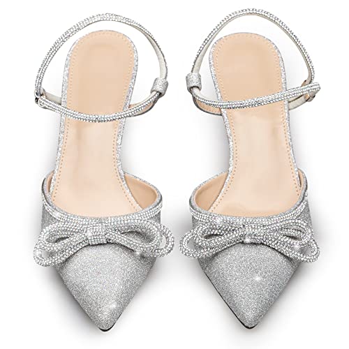 RIBONGZ Women's Wedding Shoes Glitter Sparkly Pointed Toe Strappy High Heels Sexy Ankle Strap Pumps Bridal Party Work Dress Shoes 6