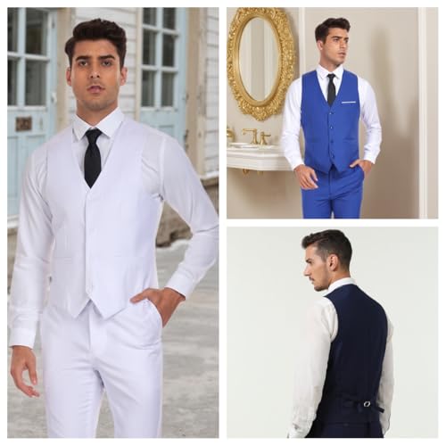 Men's Suit Vest Business Formal Dress Vests for Men Solid Color Casual Wedding Tuxedo Waistcoat 3