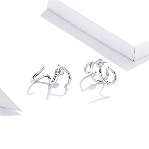 BISAER 925 Sterling Silver Triple Illusion Stud Earrings Double Huggie Hoop Earrings for One Hole Simple Trendy Claw Earring for Women Jewelry Gifts 7