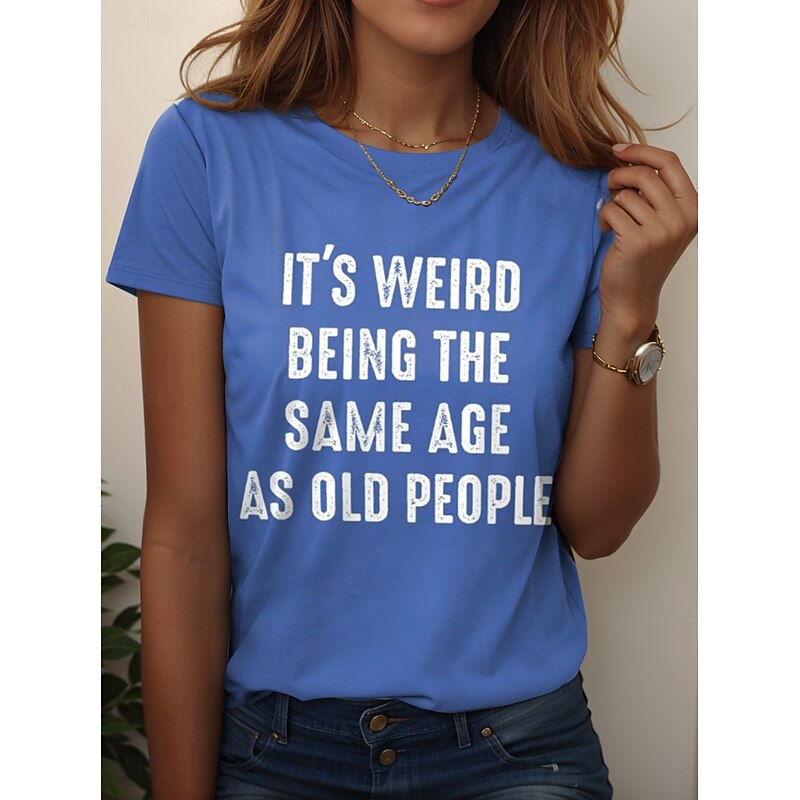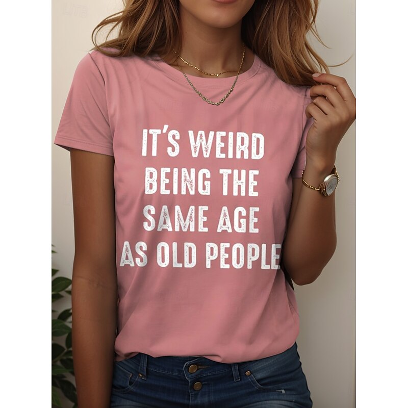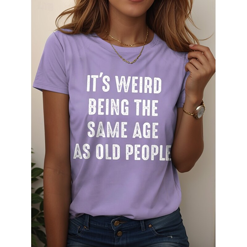More information about Oktoberfest Women's T Shirt Graphic Letter Vintage Stylish Classic Short Sleeve Crew Neck Regular Tops Daily Weekend Print Black White Pink Blue Purple Summer Spring IT'S WEIRD BEING THE SAME AGE AS