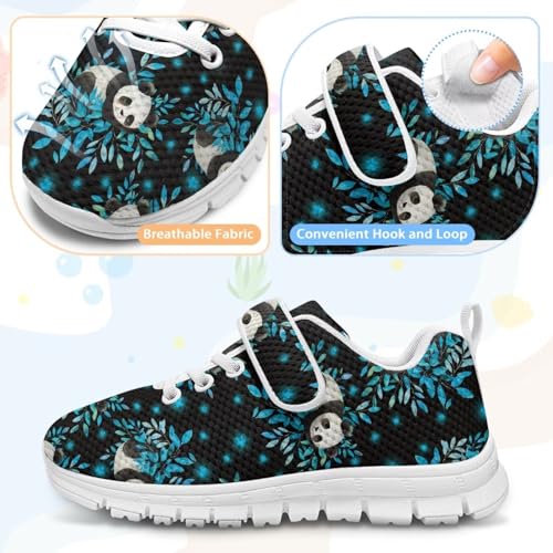 Boys Girls Sneakers Kids Breathable Lightweight Strap Tennis Athletic Running Shoes Panda Blue Plant Pattern(White Sole) 1