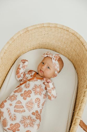 Copper Pearl Baby Gown - Knotted Newborn Sleepers for Baby Boy and Girl, Soft Stretchy Long Sleeve Infant Gowns with Bottom Tie and Hand Mittens, Perfect Hospital Coming Home Outfit (Gingerbread) 6