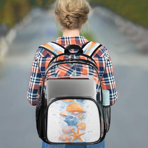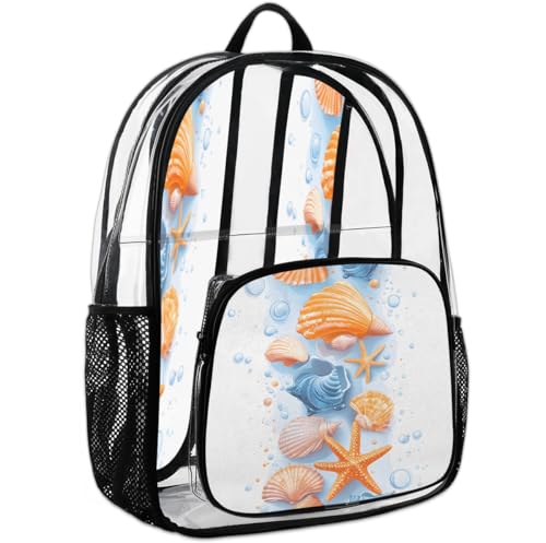 HOT ! Tropical Ocean Shells Clear Backpack, Stadium Backpack for Women Men Adult Concert Festival Work Daily Travel