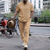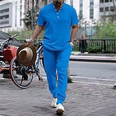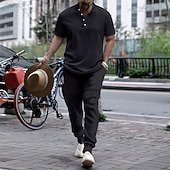 More information about Men's T-shirt Suits Tee & Drawstring Waist Pants 2 Pieces Outfits Short Sleeve Henley Summer Plain Fashion Casual 2 Piece Vacation Daily Wear Going out Black White Royal Blue Top Tee for Men