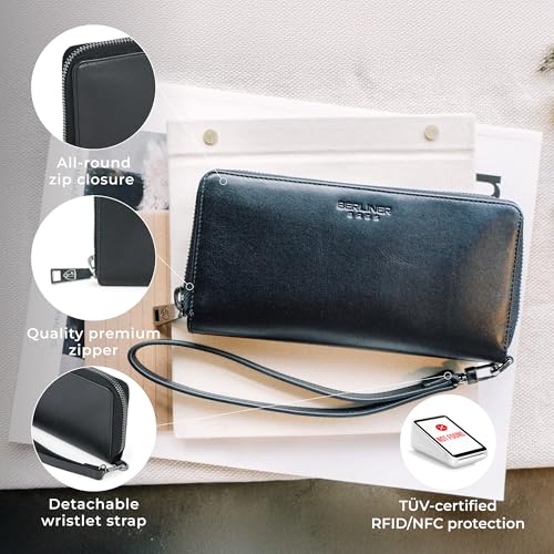 More information about Berliner Bags Premium Genuine Leather Wallet Lyon, RFID Blocking Credit Card Holder, Clutch Purses for Women, Zip Around Wallet for 15 Cards and ID window, Bills, Coins - Black