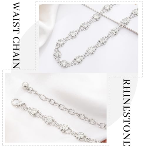 Abien Rhinestone Waist Chains Silver Chain Belt Thin Crystal Waist Belts Large Size Sparkle Waistband for Women 5