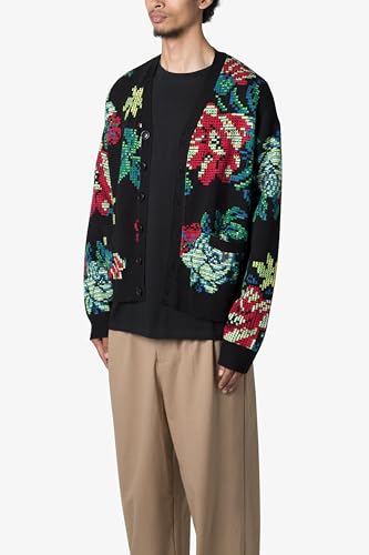Fabric type: 50% Viscose, 28% Polyester, 22% NylonCare instructions: Machine wash cold, lay flat to dryOrigin: ImportedClosure type: Buttonthe Floral Knit Cardigan is a custom knit sweater that is constructed with a jacquard floral pattern, tonal black ribbing and plackets, and finished with a button placket.Relaxed fitmodel is 6’1, 140 lbs and wears a size medium excellent for everyday use. superior materials and excellent craftsmanship ensure long-lasting durability.