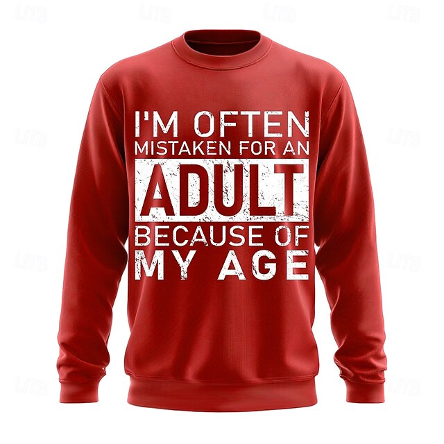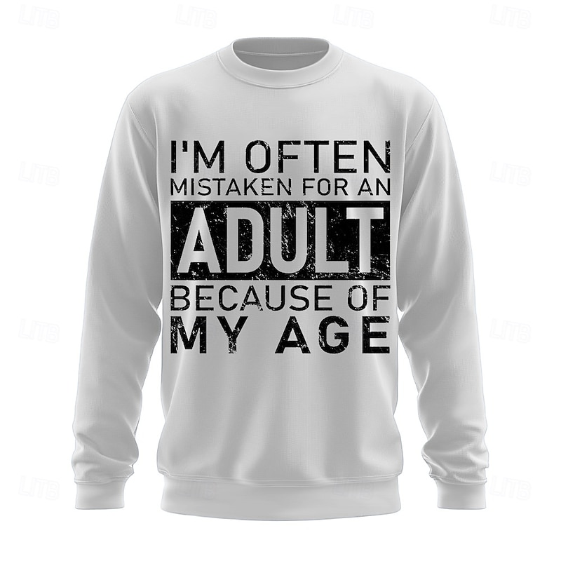 Men's Long Sleeve Graphic Sweatshirt: Funny Adult Age Pun 'I'm Often Mistaken For An Adult Because Of My Age' 3
