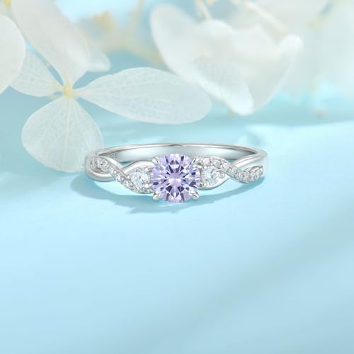 FJ Promise Rings for Her 18K White Gold Plated 925 Sterling Silver Engagement Anniversary Wedding Eternity Ring Birthstone Jewelry for Women 6