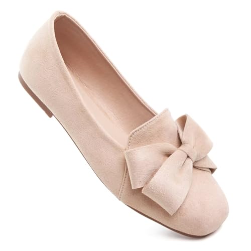 Hee grand Bowknot Ballet Flats for Women Square Toe Dressy Shoes Suede Comfort Slip-On Loafers Casual Women's Flats 6