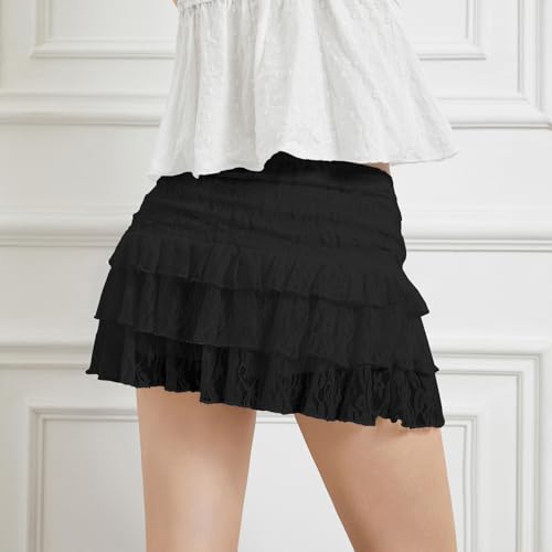 • Design:Layered lace skirt;Womens mini skirt, high waist, tiered ruffled design, easy to pull on and take off; Easy to match with tank tops or shirts