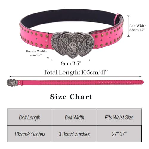 Women Western Belt Heart Buckle Leather Belt for Jeans Pants Dresses Vintage Y2K Cowgirl Cowboy Belt
