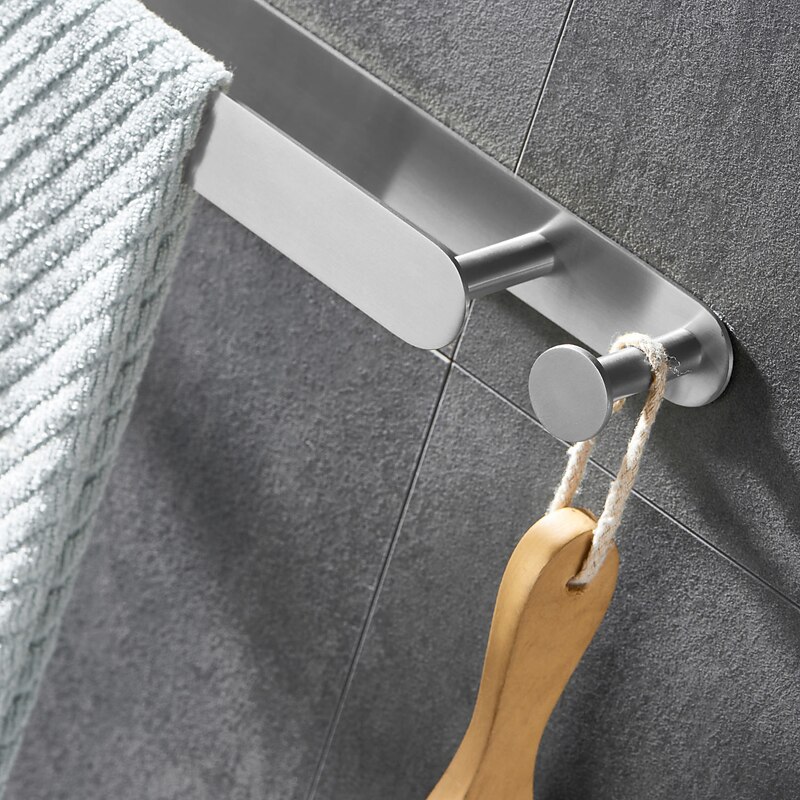 Brushed Multifunctional Towel Bar with Hook 304 Stainless Steel Electroplated, 40cm, Brushed, Bathroom and Kitchen Shelf Punch-free 5