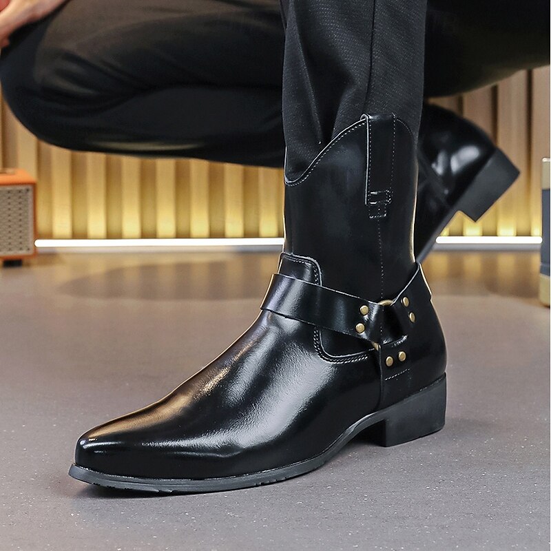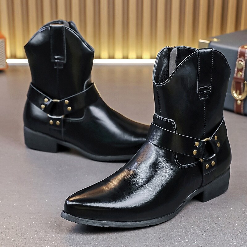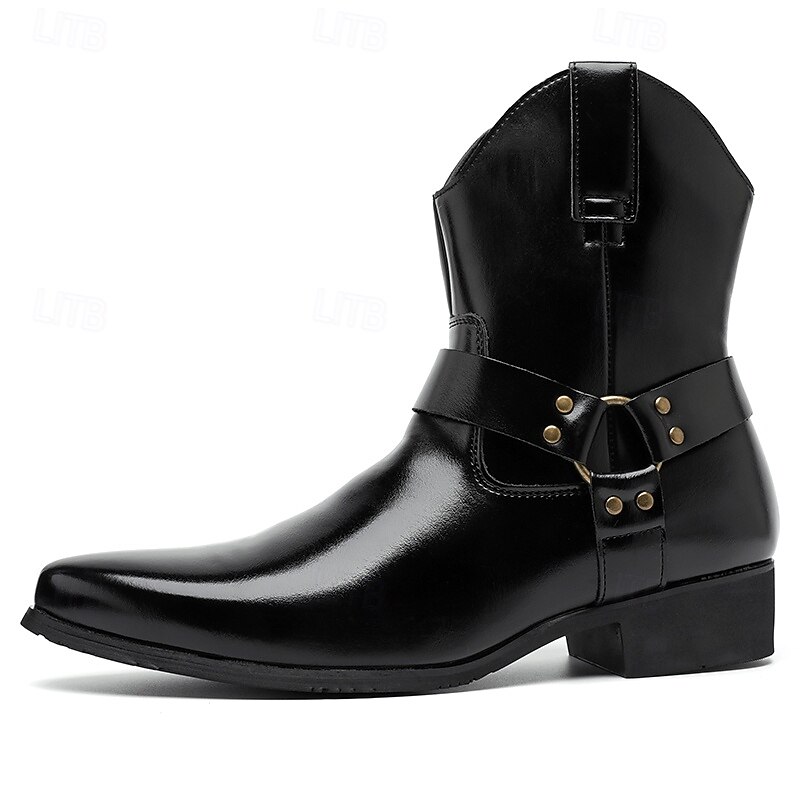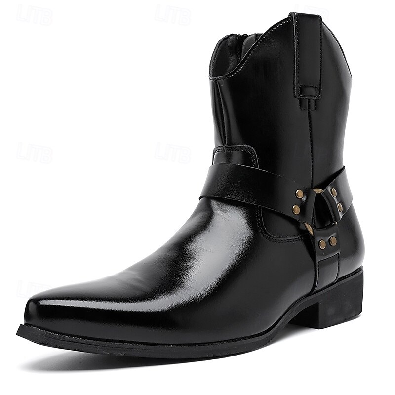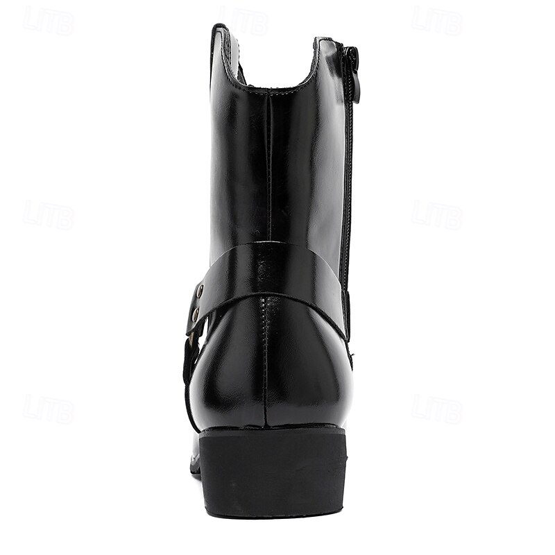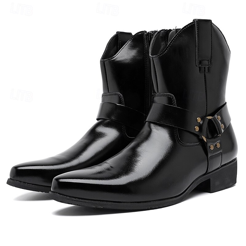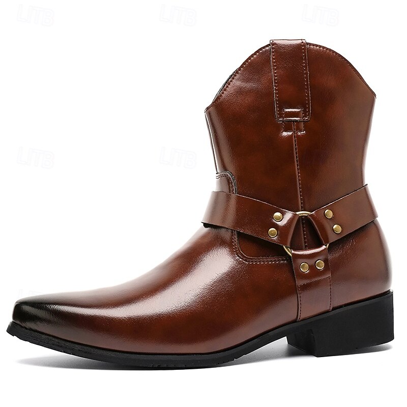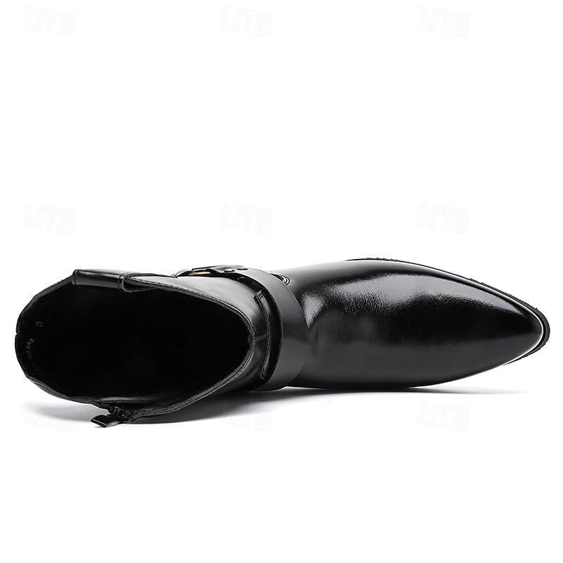 More information about Men's Brown Leather Ankle Boots with Side Zipper and Buckle Strap, Stylish Dress Boots for Business, Evening Party and Formal Occasions