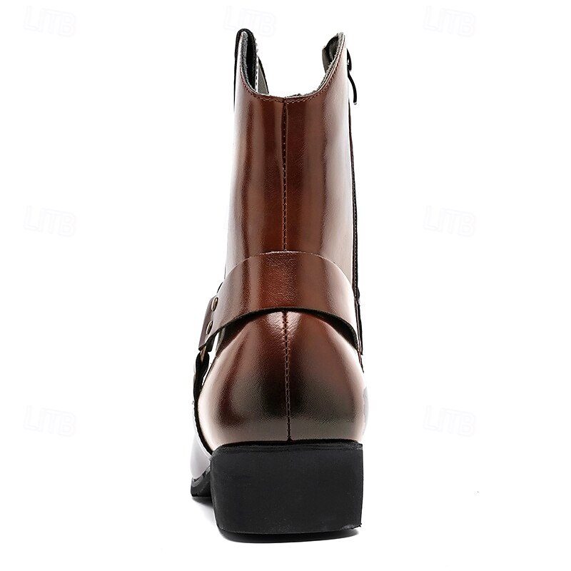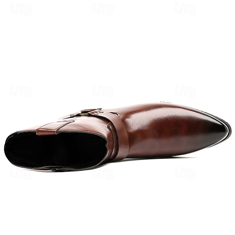 Men's Brown Leather Ankle Boots with Side Zipper and Buckle Strap, Stylish Dress Boots for Business, Evening Party and Formal Occasions 3