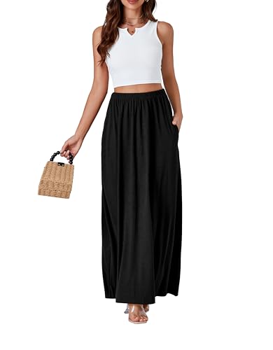 HOT ! Women's Casual Elastic High Waist Flowy Hem A Line Maxi Long Skirt with Pockets