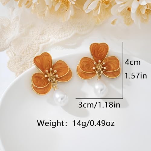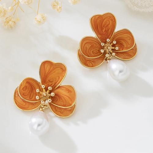 Flower Earrings for Women Pearl Statement Drop Dangle Earrings Pink Blue Orange Flower Stud Earrings Wedding Party Statement Floral Jewelry 6