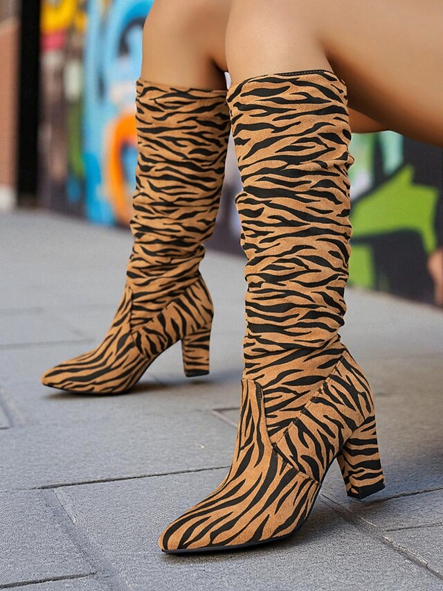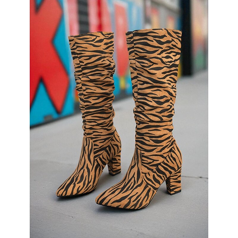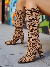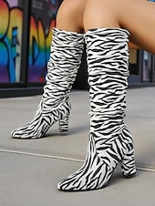 More information about Women's Zebra - Striped Slouchy Knee - High Block Heel Boots - Edgy Streetwear Shoes for Casual Hangouts and Night Events
