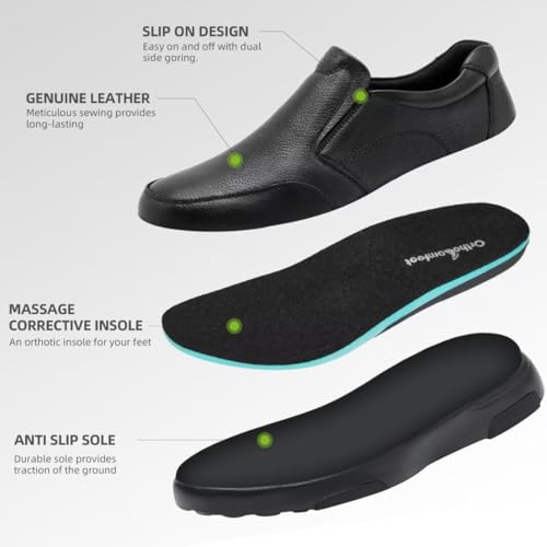 More information about OrthoComfoot Men's Orthopedic Leather Dress Walking Shoes: Comfortable Plantar Fasciitis Oxfords with Arch Support, Business Diabetic Slip-On Loafers for Foot and Heel Pain Relief
