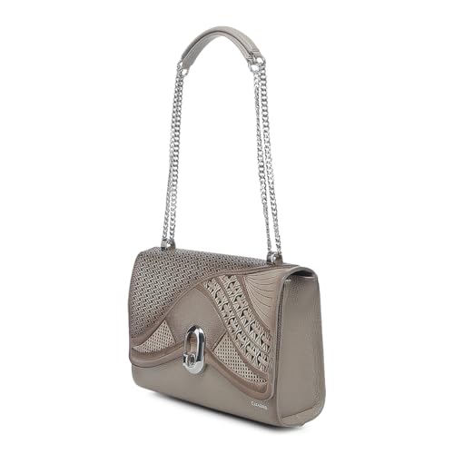 • VERSATILE DESIGN: Features a sophisticated beige color with decorative patterns, secure clasp closure, and elegant chain strap for shoulder or crossbody wear