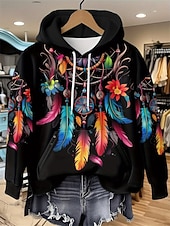 More information about Women's 3D Print Vintage Boho Hoodie Patchwork Hoodie Sweatshirt Floral s Floral Graphic Vintage Retro Casual Long Sleeve Hooded Regular Tops Street Casual Black Blue Orange Brown Khaki Fall Winter
